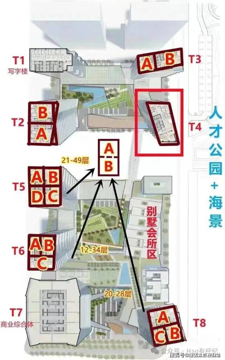 ·T8栋(带阳台)500平4房+1房 东南向(36万~38万/m² 总价1.8亿起)