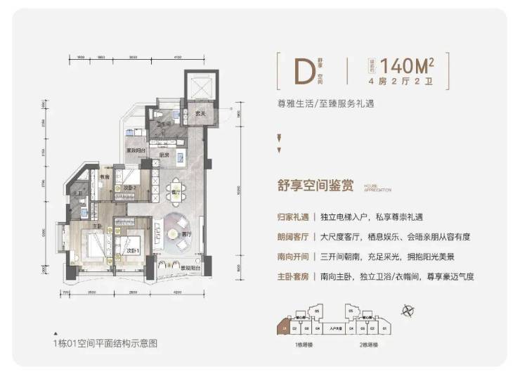 另外,主卧主要以270°环幕设计,遵循“景观最大化”原则,将景观的转角位全面打开,带来了望海境界的突破、空间尺度的颠覆,也是项目对市面常规户型的全维迭代。