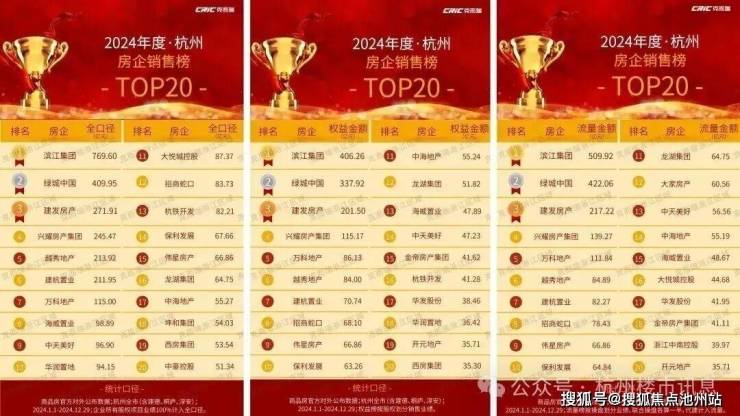 荣登2024年1-10月杭州房地产全口径榜、流量榜𝑻𝑶𝑷𝟑