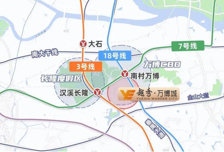 同时,项目还享有三地铁线、双地铁站的便利,距离地铁7号线和18号线的交汇站点南村万博站仅有约500米,距离地铁7号线与3号线的交汇站点汉溪长隆站也仅有约1000米。无论是自驾还是公共交通,都能让你轻松出行。
