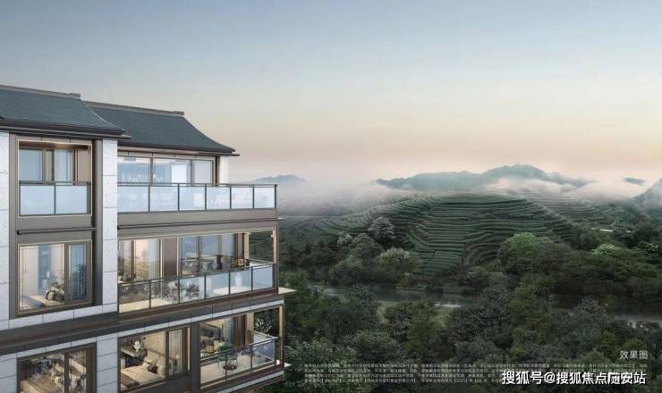 而溪映听庐,正是滨江的下一个景区低密作品,容积率低至1.1,更是请来了gad建筑设计院和香港贝尔高林,操刀设计建筑和景观。立面设计为现代中式建筑风格,有檐口、屋脊的形制。