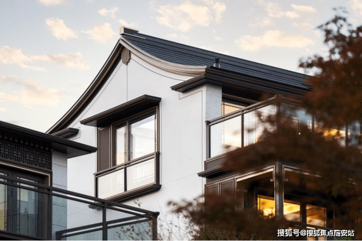 别墅的建筑风格选择了新中式,将中式的坡屋顶与通透的大玻璃立面结合,将东方的传统意境与国际化的审美融合,既传统又现代。