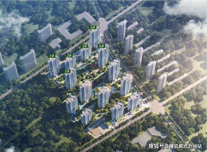 一期6栋楼,二期改规划后是9栋楼,合计15栋楼;一期1/5号楼为33层、2/3号楼为21层、6/7号楼为34层,均为2梯四户,中间连廊链接。