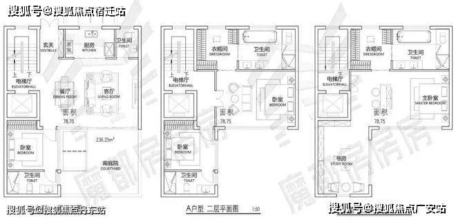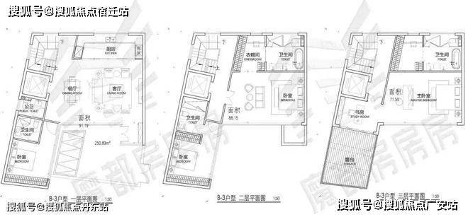 话不多说,让我来看看公开文件爆出的部分过程稿户型图,都是地上3层,无地下室: