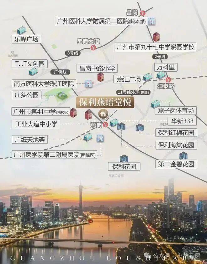 保利燕语堂悦自带一所24班小学,并由海珠区头部名校——宝玉直实验小学领办,业主子女可就近入读,享受优质教育。周边还有广州市五中附属初级中学、广州市第41中学、培英小学、江南外国语学校等8所优质学府,涵盖小学至初中的完整教育体系,为孩子的成长提供卓越的学习环境。