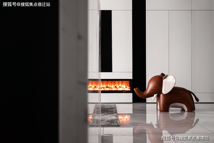 黑白配色的电视背景墙将壁炉纳入这块空间,使得本身冷色调的家瞬间温暖而治愈。