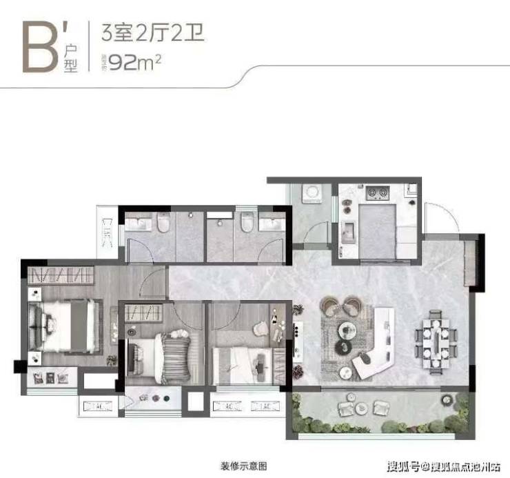 洋房户型:户型设计合理,采光充足。例如,83㎡户型为三室两厅两卫,99㎡户型为四室两厅两卫,空间利用率高
