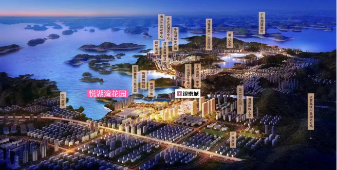 悦湖湾花园占地面积约10万方,建筑面积约14万方。千岛湖目前唯一有1.6公里沿湖景观步道和5.5万方半岛公园。出则繁华北邻银泰城,入则静宜南邻山水,小区3面环湖呈半岛式绿岛住居。项目共分为2期。