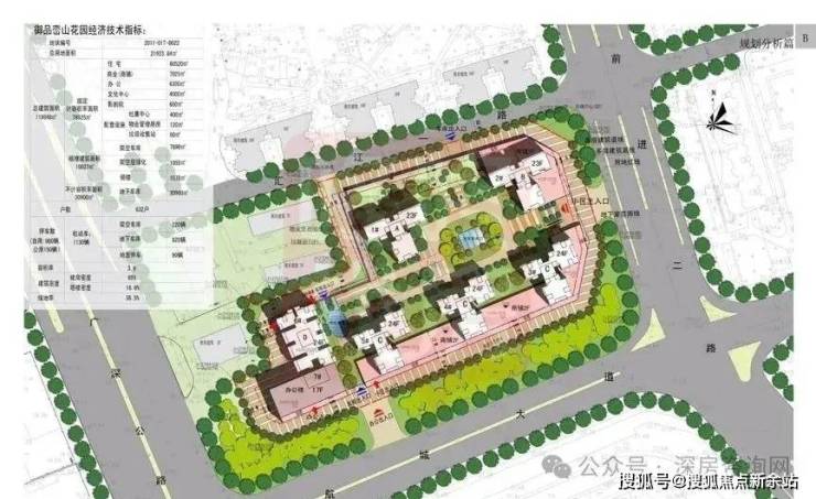 根据此前御品峦山规划,项目占地2.1万㎡,总建面11.98万㎡,容积率3.6,共规划634户。