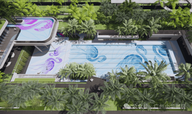· 标准六泳道设计,绝美叠水景观