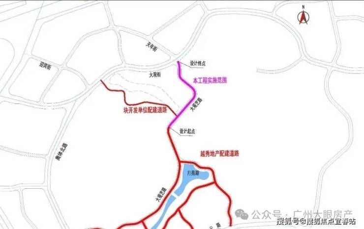 早在5月11日,官方就发布了聆湖路施工总承包公开招标,施工总工期为127天,也就是4个月左右完工。道路全长约418米,南接黄云路地块越秀地产配建道路,北止于大观街,道路等级为城市支路,规划红线宽20米,双向两车道。