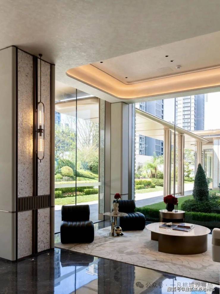 滨江鸣澜里的建筑立面设计很是用心,算是周边首个采用“四面铝板” 的楼盘了。搭配大面积的玻璃幕墙和香槟色的金属线条,整体外观的确很有现代感和高级感,看了的确很心动,一点不输给豪宅。