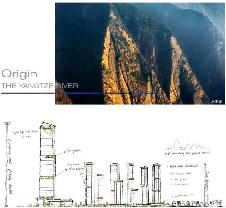 项目建筑空间序列取意三峡山水之势,将层峦叠嶂的自然形态转译为错落有致的城市空间序列。通过建筑层级与退台、架空层等元素的协同设计,模拟山体峡谷的韵律,在刚柔并济中重构三峡意象的当代城市风景。