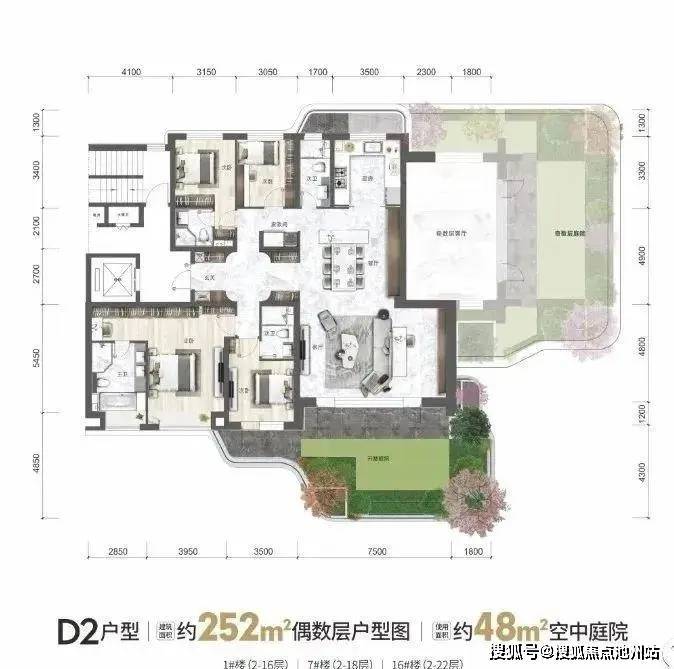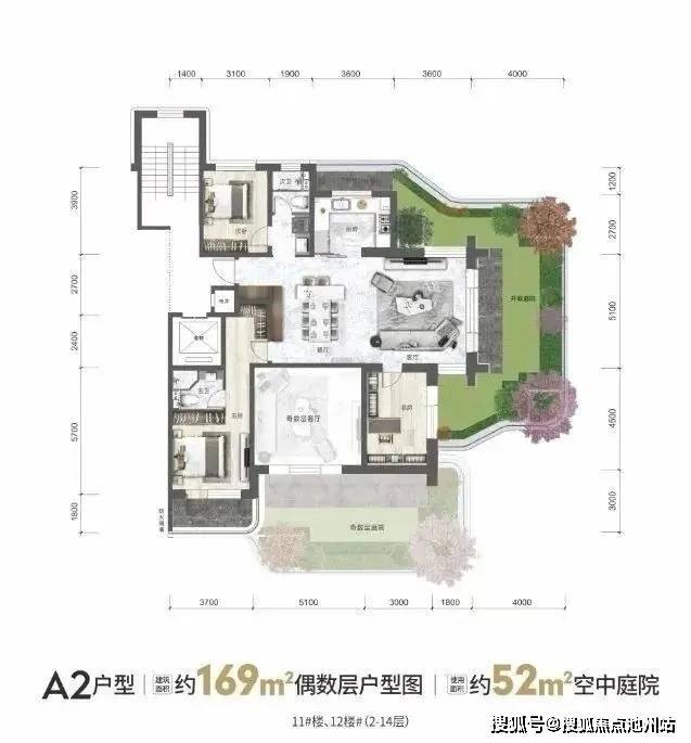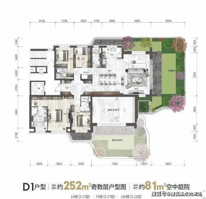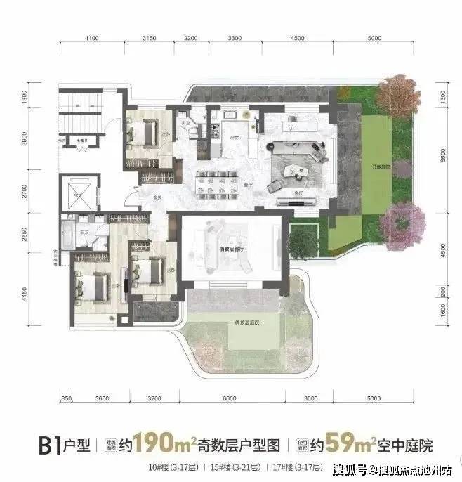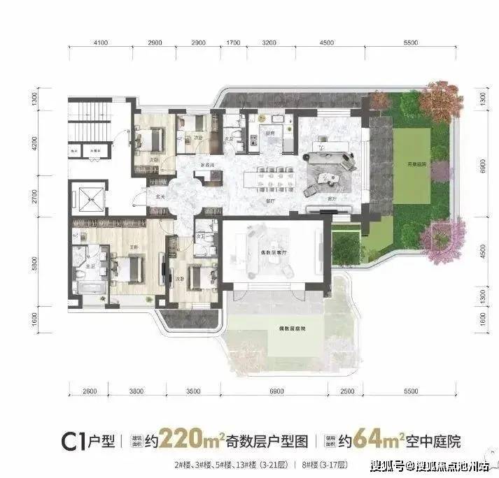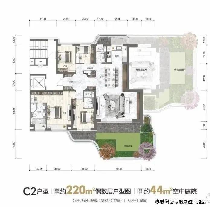 如下为各面积段的户型产品设计,花园和厅一一对应,两层挑高,私密性很好。