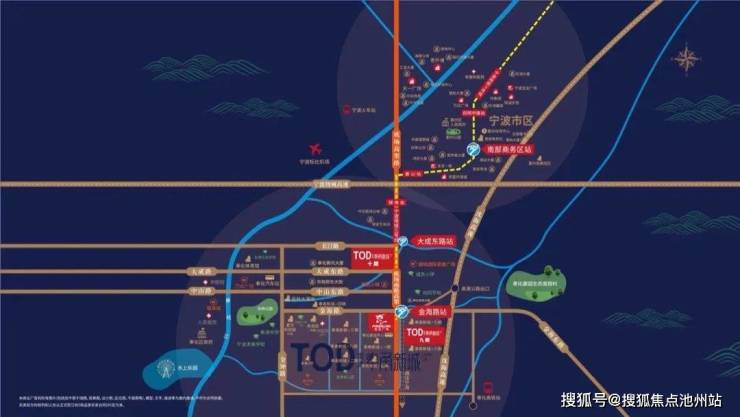 宝龙 TOD 奉甬新城位于轨交3 号线的大成东路站,连接着奉化与宁波市区,是奉化融入宁波的桥头堡;奉化老城区拥挤,拆迁成本大,向东发展是必然趋势,另外,因为地铁3 号线和高铁站的牵引作用,所以宝龙 TOD 奉甬新城板块将是未来奉化城市发展核心区。