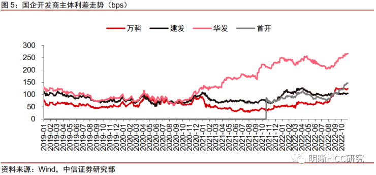 央企开发商之间的分化开始加剧,需关注一级发行的持续性。央企开发商当中,招商蛇口、中海、华润、保利的估值表现最为稳健,在行业危机之下,这些企业的主体利差始终控制在100bps以下,大部分时间内围绕50bps运行。也有一些主体出现了估值的波动,金茂、铁建地产的主体利差上升至150bps左右,绿城则上升至接近300bps,二级市场甚至已经出现90元以下的成交净价。在这样的二级市场价格之下,近期绿城仍然有一级新发,我们认为能够反映基石投债人的积极态度。以一级市场发行为前置判断条件,进行二级市场配置,或许是在央企地产中获取alpha的重要思路。