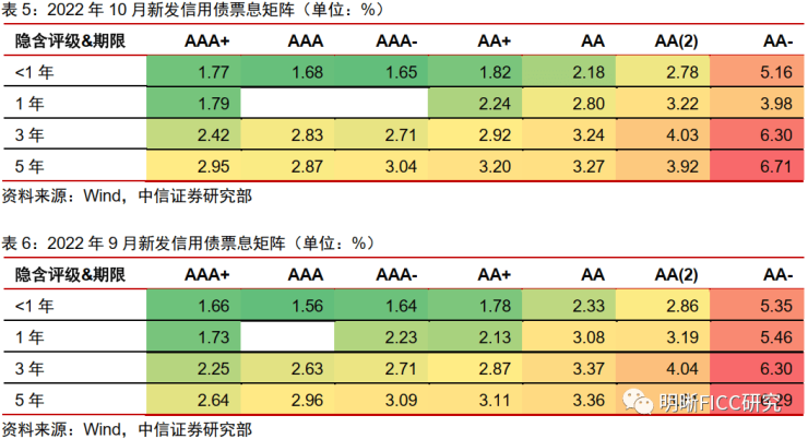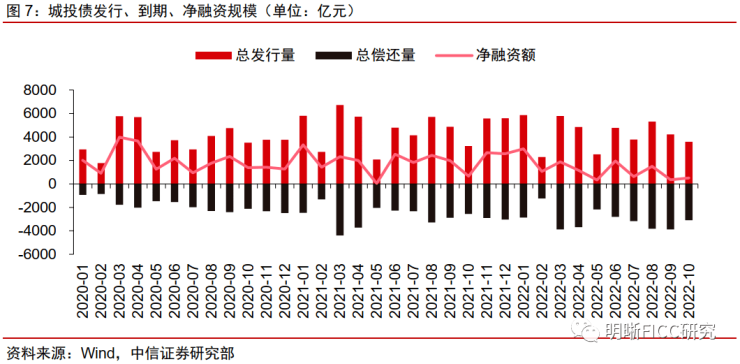 10月信用债净融资714亿元。2022年10月,信用债总发行规模为9950亿元,总偿还规模为9236亿元,录得714亿元的净融资。2022年1~10月,信用债净融资规模合计1.7万亿元,较去年同期增长16%。