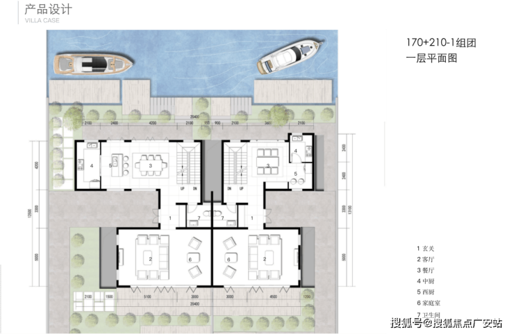 每一排别墅前都有一条渠道,引入水系,每户都带有水岸码头,用来停靠游艇,并且水系的分布确保每家都能开游艇到兰香湖中心,周末逛街shaopping,下了游艇到家再游个泳,不用出国就能享受棕榈岛同款生活。
