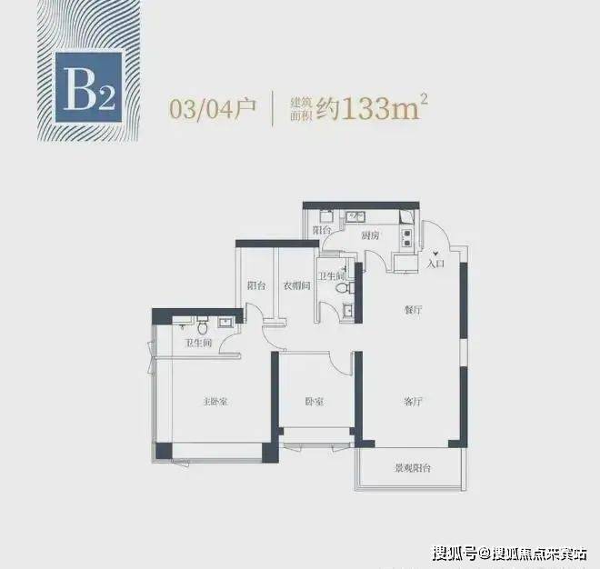 1栋二单元B2户型:面积约为133㎡