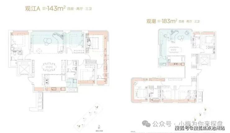 城建江南岸户型图已经更新,也是标准的准四代户型,目前公布有143、183㎡两个户型。算上赠送面积,得房率最高可达113%。而且户型是专门为了看江而优化的,主卧和客厅都有较好的看江视野,尤其是183㎡户型,客厅是270°无遮挡看江。