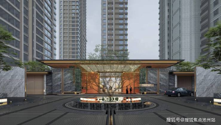 归家礼序:云泊江岸二期打造了全新升级的 3 进式归家礼序,约 32m 至阔庄园界面铺陈着归家动线,约 27m 大堂挑檐以叠水造景、熠熠星空,恭迎每位居者的到来,约 100㎡酒店式大堂接驳灵动轻盈的景观切片,让季相感知融入生活,为居民营造了极具仪式感的归家体验。