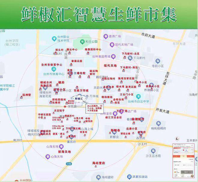【交通配套】 中心大道与开发大道交叉口(交通枢纽标识) 直线距离市政府约2.5公里,至台州站车程约15分钟 距离地铁站学院路约355米 【核心卖点】 1、周边小区密集,消费人群高达约20万 2、台州市首家智慧市集 3、线上app智能可配送到家 4、总价低(13-15W左右)永久使用 5、无忧当房东.一站式委托管理 7、回报率高.收益稳.回本周期短 8、定金2万 三天补齐尾款 9、社区式生鲜市集 便捷式购物 10、独立摊铺.可投资可自营