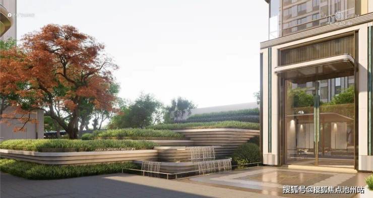 门庭中央,立体叠水+文冠树阵,层层叠水,步步生财,完成从城市喧嚣到隐奢私境的身份转场,营造归家仪式感。