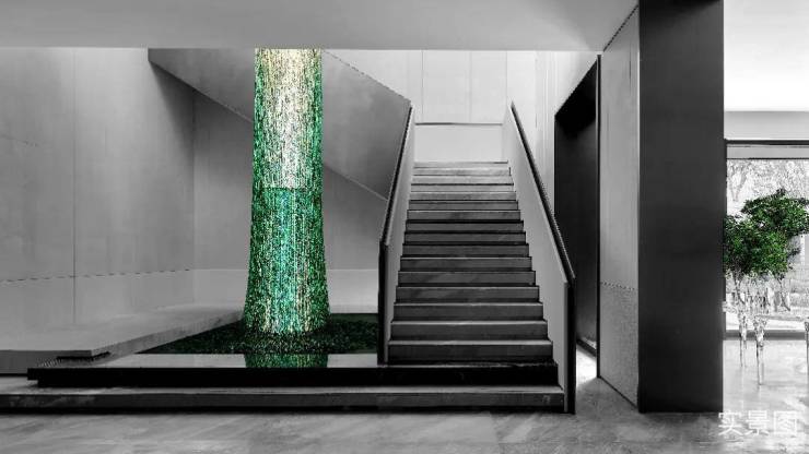 以超白玻璃引入的静谧光景,打破围合式会所的物理边界,设计师通过落地窗景与下沉式庭院的景观联结,以采光和风景实现了地下会所空间的地上化,照抚人类渴望身处自然静谧的精神本能。