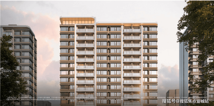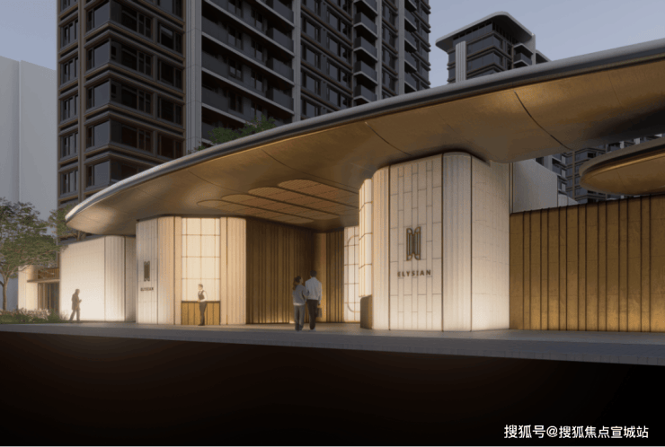 蓝灰色玻璃+仿石铝板+艺术涂料材质,穿插优雅线条,让建筑这张“脸”看起来更高级。 One&Only酒店式门头。用 雕塑体块、温润弧面和雅致线条,营造具有艺术格调的归家仪式感。