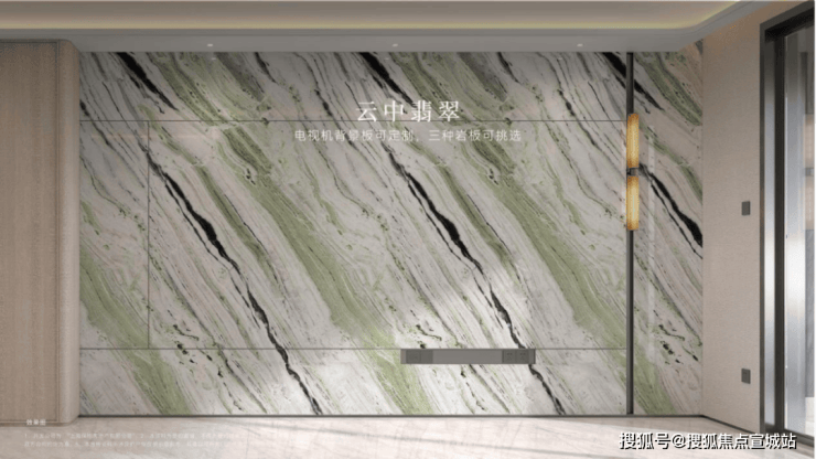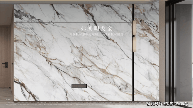 充分考虑业主的个性化需求,在电视背景板提供了 新潘多拉、云中翡翠、弗朗明戈金三种结晶釉面岩板选择,成本更高,施工难度也更大。