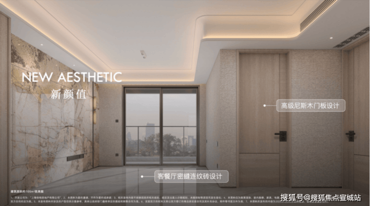 项目大量使用奢石设计,客厅 四边弧形天花、主卧 树叶拼花地板、精致优雅的 骨骼线设计,都是开发商花费更大成本和耗材去呈现更美的视觉体验。