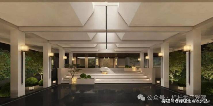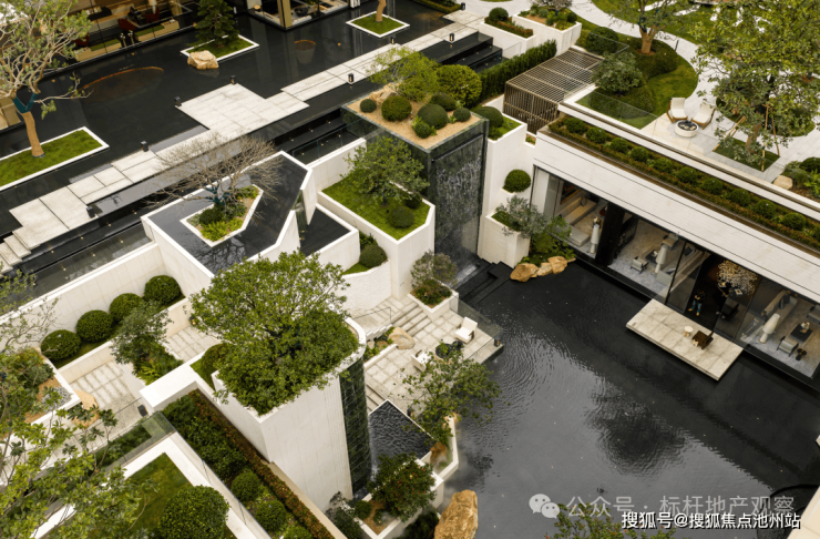 景观呈现的是一个立体的、全境洄游的园林。下沉庭院、镜面水院、阳光草坪,以多维垂直的角度,诠释着风景与日常生活的深度交融。