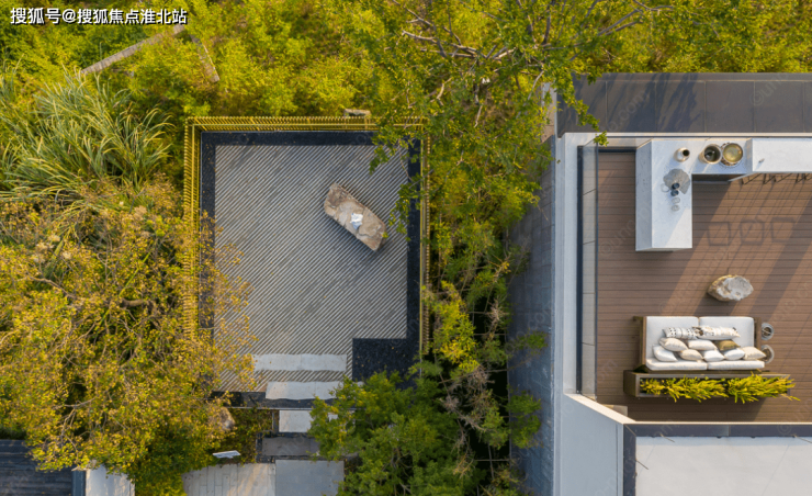 样板院内共有7栋建筑,以“山、石、水、木”四种自然元素为灵感设计入户景观,并在场地尽头设计观景平台,作为这场体验的完美句点。