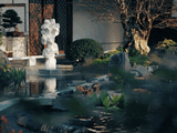 项目打造了 约160米超长中轴,约4000㎡中轴景观,约700㎡落玉水院、 下沉庭院以及私属入户花园。