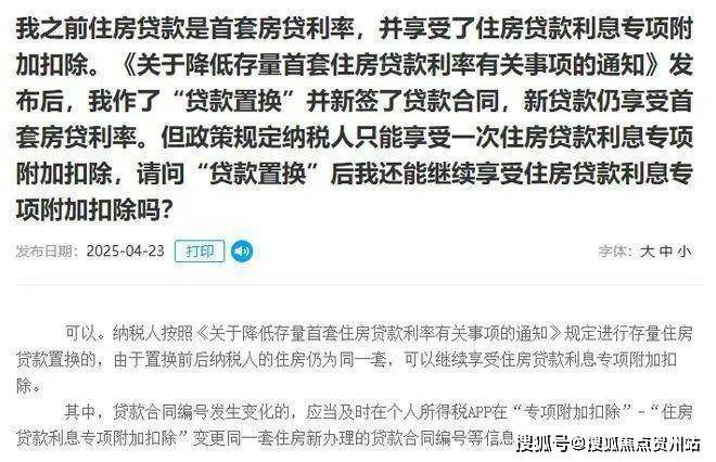 国家税务总局:二套转首套可享房贷利息专项附加扣除