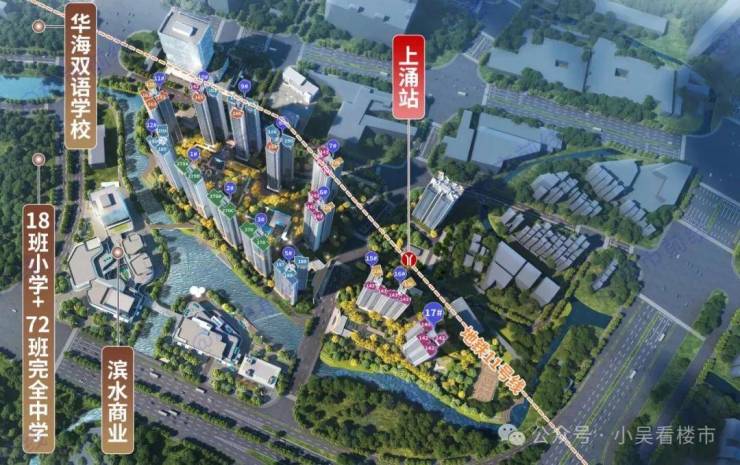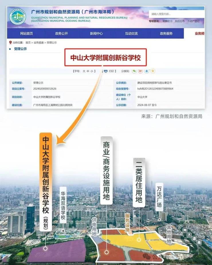 项目北侧配建了托儿所和幼儿园,西侧规划了一所12年的中山大学附属创新谷学校,涵盖了18班小学+72班完全中学,预计27年建成投入使用,项目旁边还有现有的华海九年一贯制学校{即华附海珠国际双语学校}。