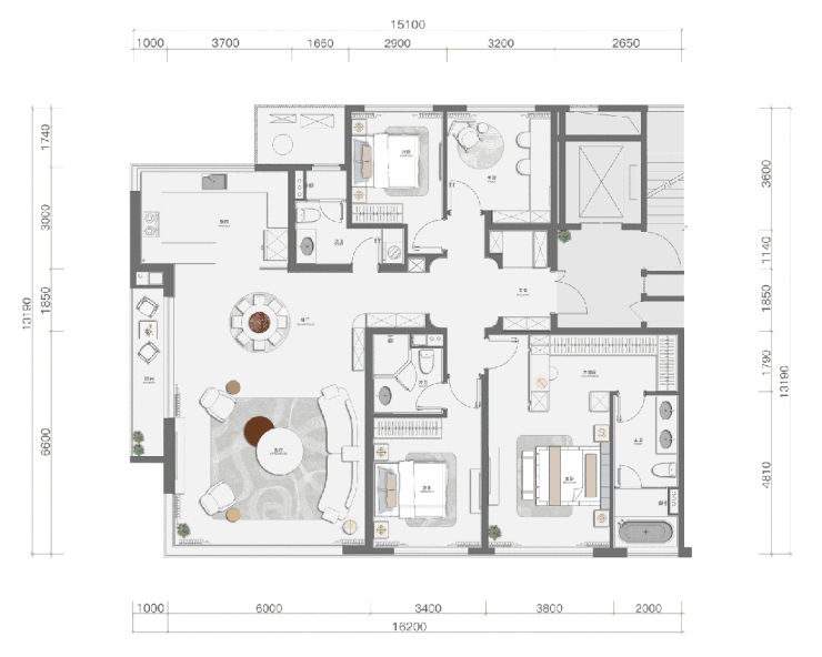 ☉ 环幕210m²户型图 | 十字圆厅