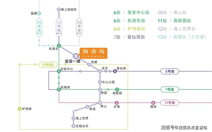 同时12号线也是支撑深圳西部经济线,南接前海自贸区,北接大空港、国际会展中心等国家级配套带来商务旅客百万人流,无缝换乘1、2、5、9、11号线地铁,被称为“换乘大户”快速前往深圳各区域中心。