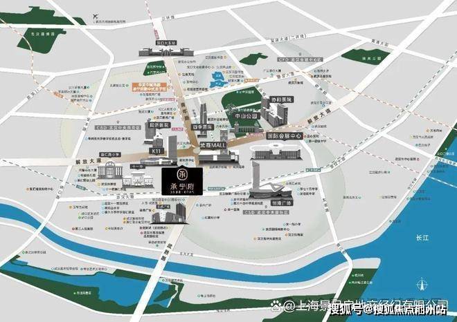 北面紧挨着武汉K11,武广商圈、恒隆广场就在项目直线500米左右;直线1公里左右可达武胜路凯德广场、汉正街、越秀国际IFC国金天地,直线2公里范围内还有江汉路商圈,大洋中心、M+购物中心都在这一块,选择超级多,并且都是城市级购物中心,配套近且优质。