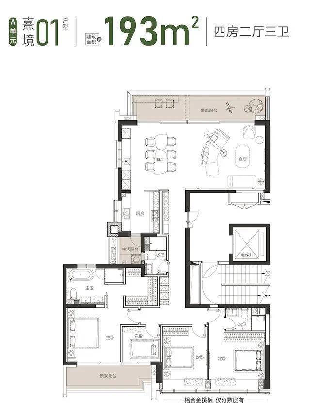 建面约 193 ㎡ 01户型 4房2厅2卫