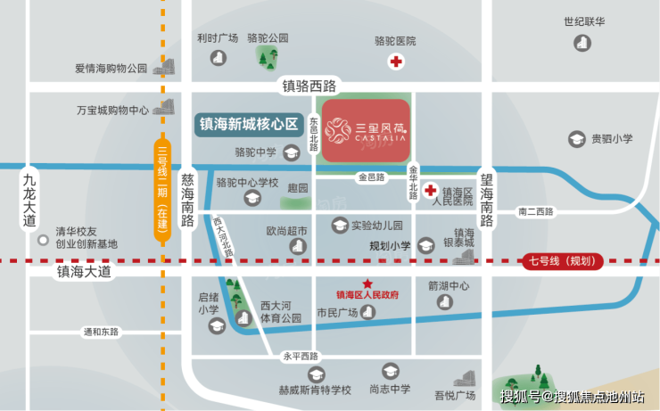 项目定位改善大盘,总建面积超22万方,占据约380米中大河岸线,沿中大河由低至高,由21幢现代中高层、沿街商墅、幼儿园(代建)组成。以铂金灰的优雅立面搭配,焕新城市地标建筑群落,引领时代镇海国际品位人居。