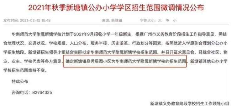 就在21年3月份,新塘镇义务教育招生领导小组发布公告称,学校预计在今年9月招生,而且划定的招生范围属越秀TOD星图小区。