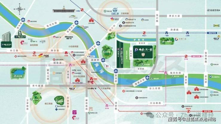 3️⃣三轨:直线距离约1.2km可达1号线陈塘庄站、9号线中山门站,11号线海河东路站,三地铁轨道交通,高效出行,优速畅达;