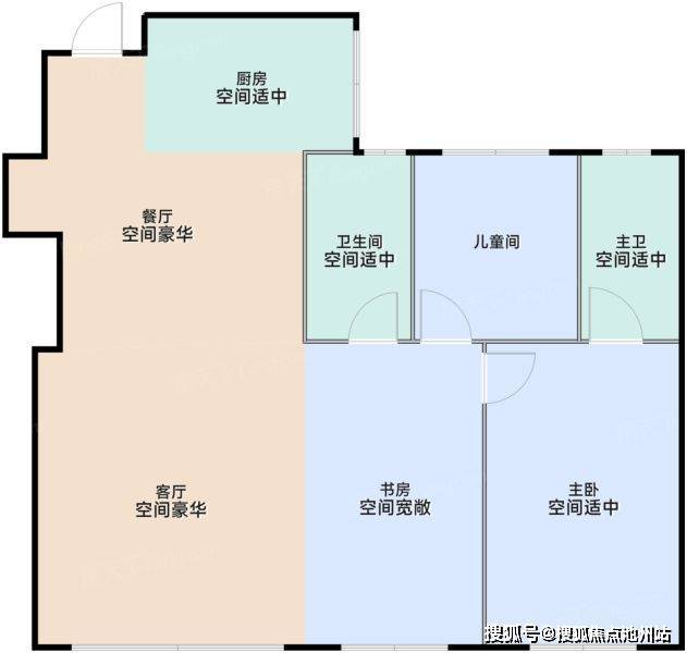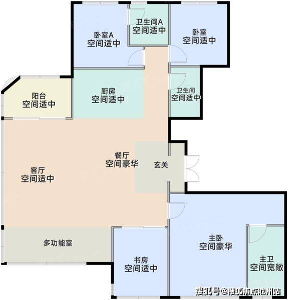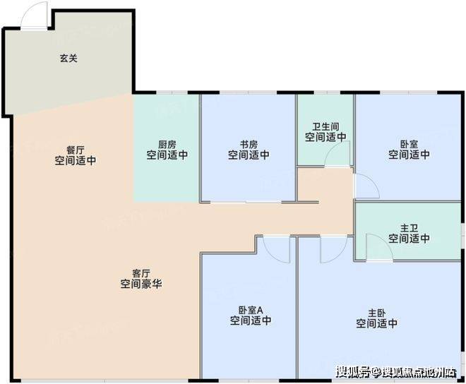 入门款138㎡户型,经典四叶草布局,三开间朝南,四个标准卧室,几乎没有走廊浪费面积。