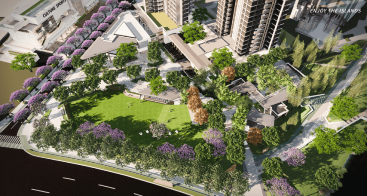 社区自带 2 万方河滨公园,内设 800 米滨水绿道、垂钓台等设施;