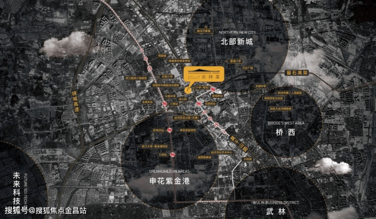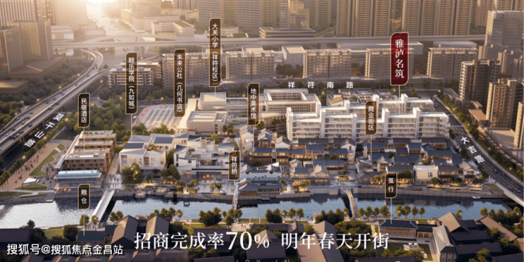 西侧1公里龙湖紫金天街、东侧1.5公里万达广场、Ins.park、北向3公里城北万象城(在建)、南向3公里大悦城、城西银泰城等多个繁华商圈。同时项目自身配套的商业街区2023年开业。