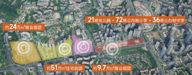 项目属于91万方的超级综合体,这里面包括24万㎡的商业、约51万㎡的住宅、约9.7万方的商业组团,以及72班小学+36班中学+21班幼儿园。