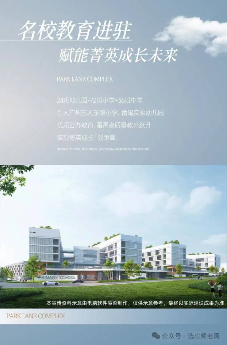 周边有广东番禺中学实验学校是九年一贯制公办学校,包含30班小学+24班初中。