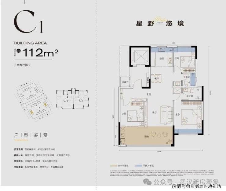 ①122%实际得房率:通过约56平三大露台、2.4米宽大阳台、客厅挑空、飘窗等方式整体赠送面积达到108㎡,得房率122%。