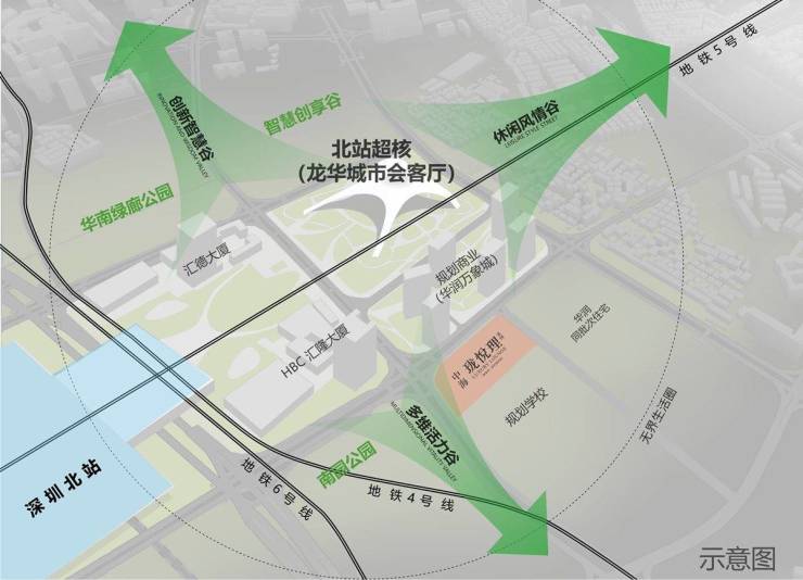●深圳7重资源复合型商务住区:“双芯三谷”城市一体结构,扼守龙华正心,虹吸百万人流